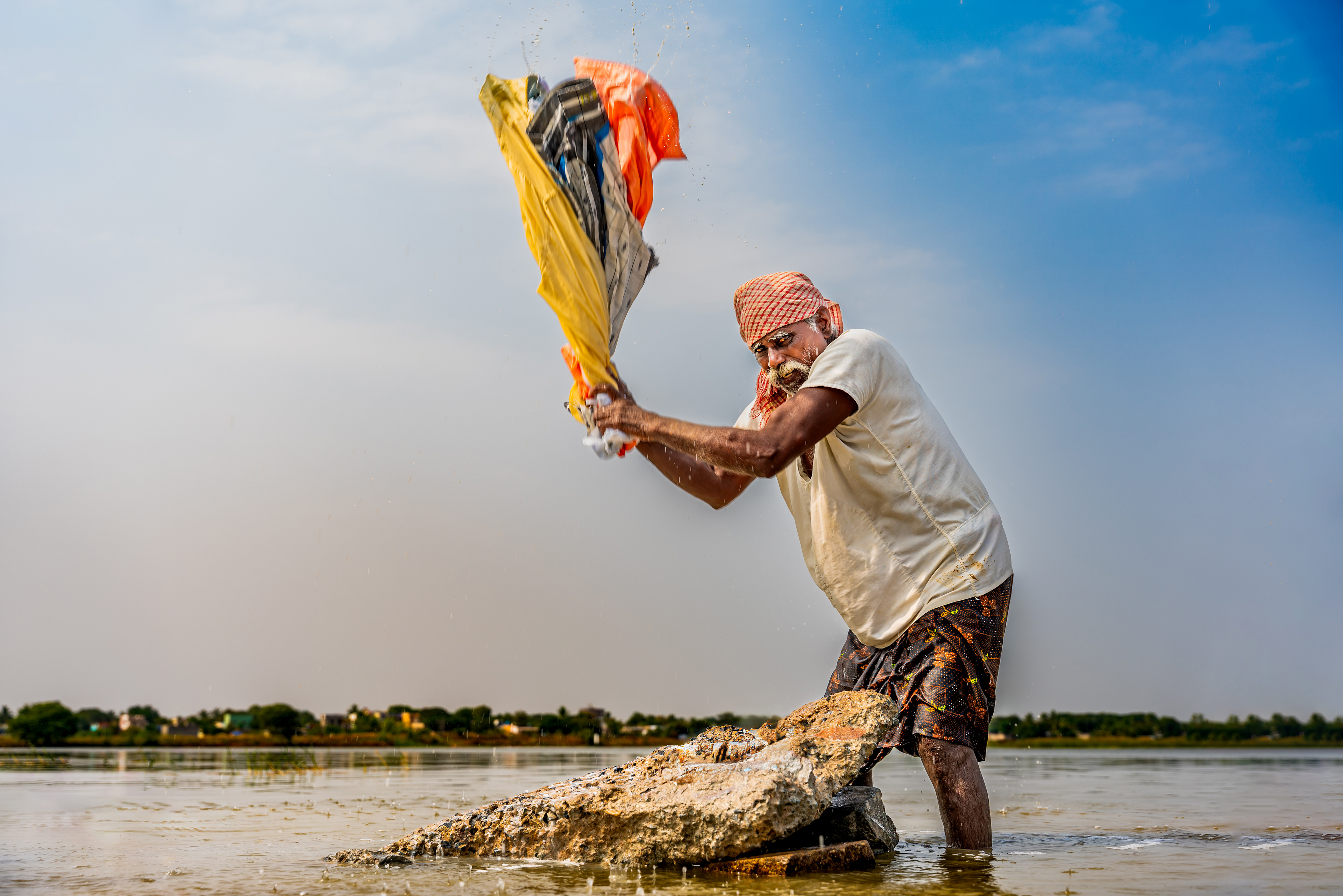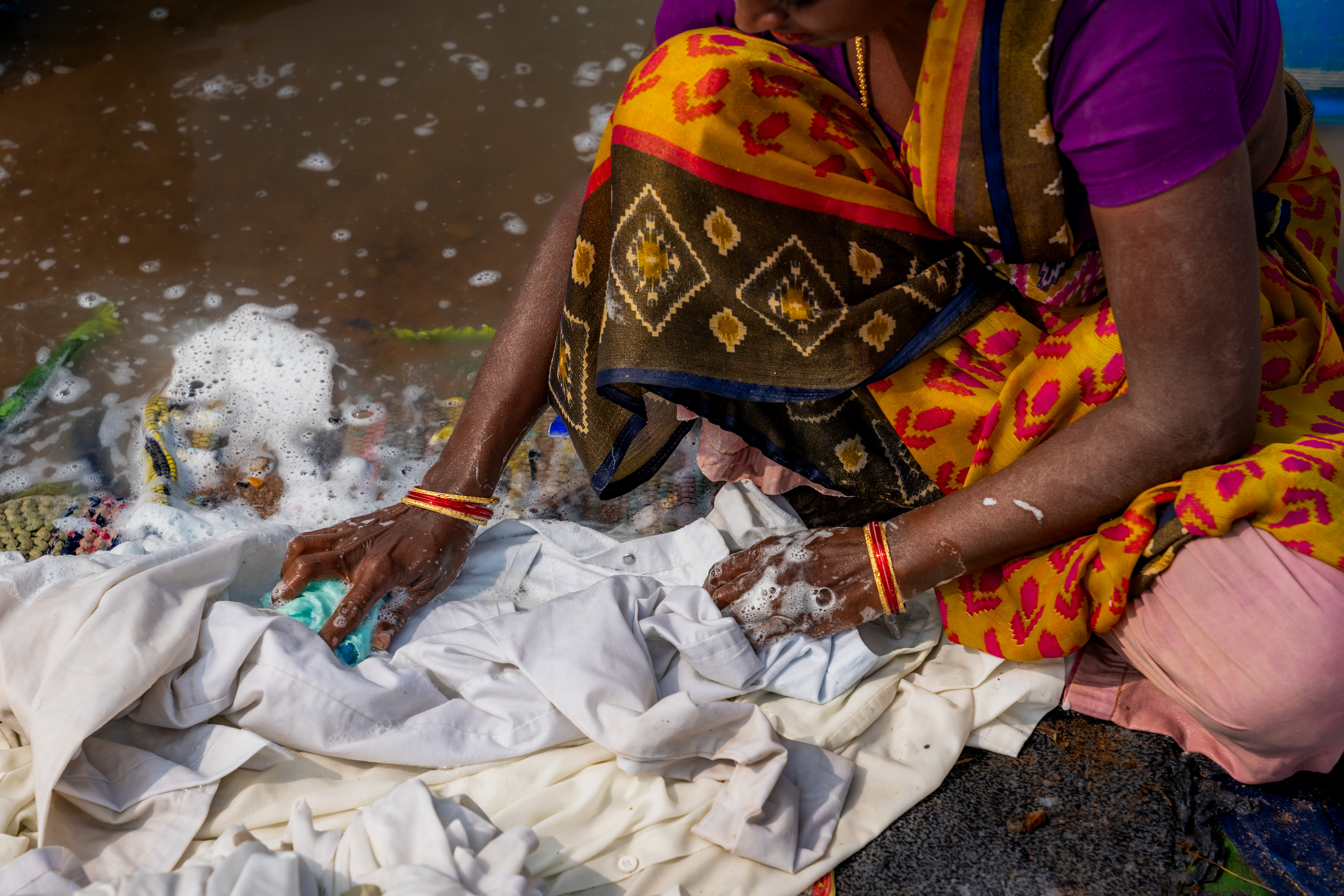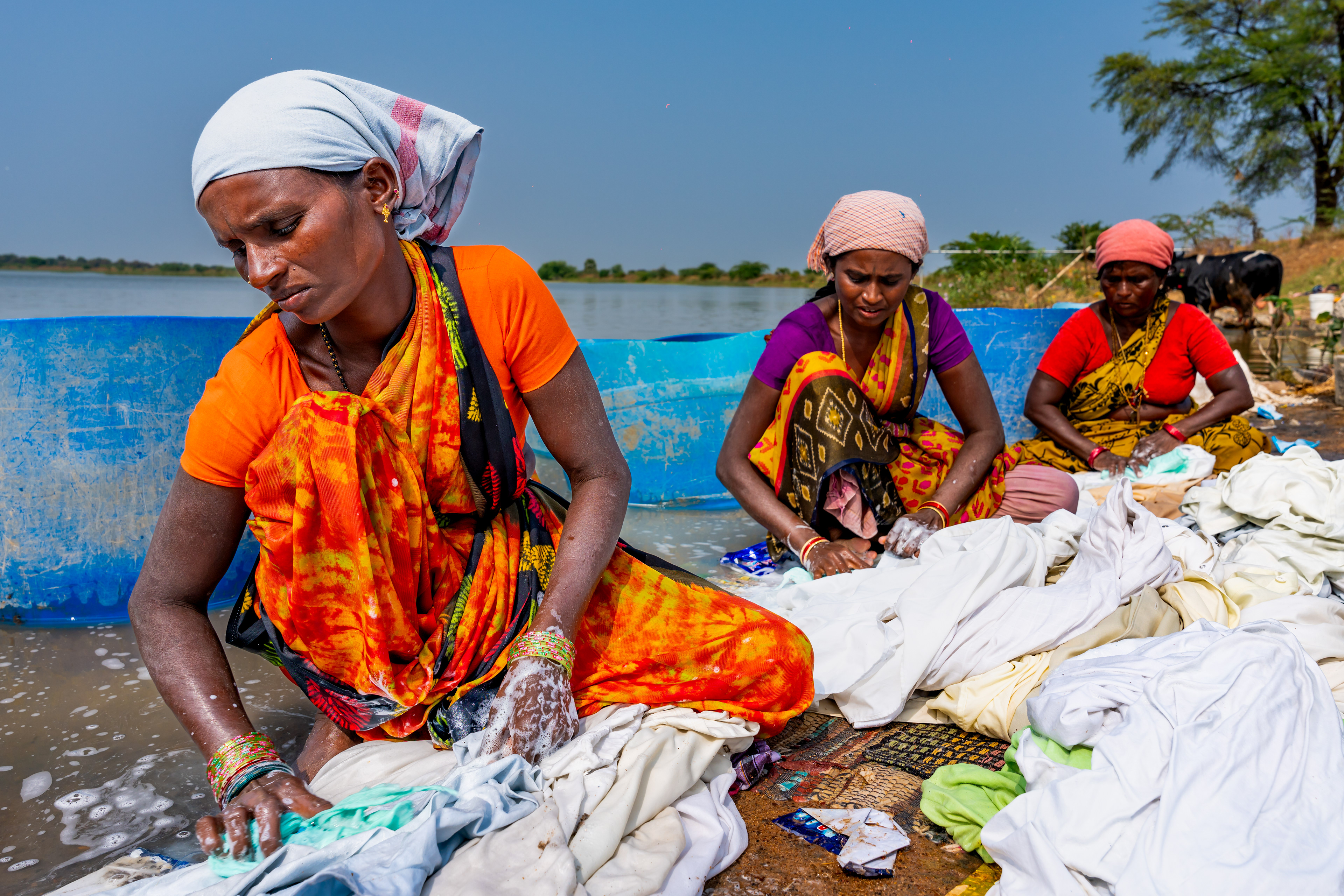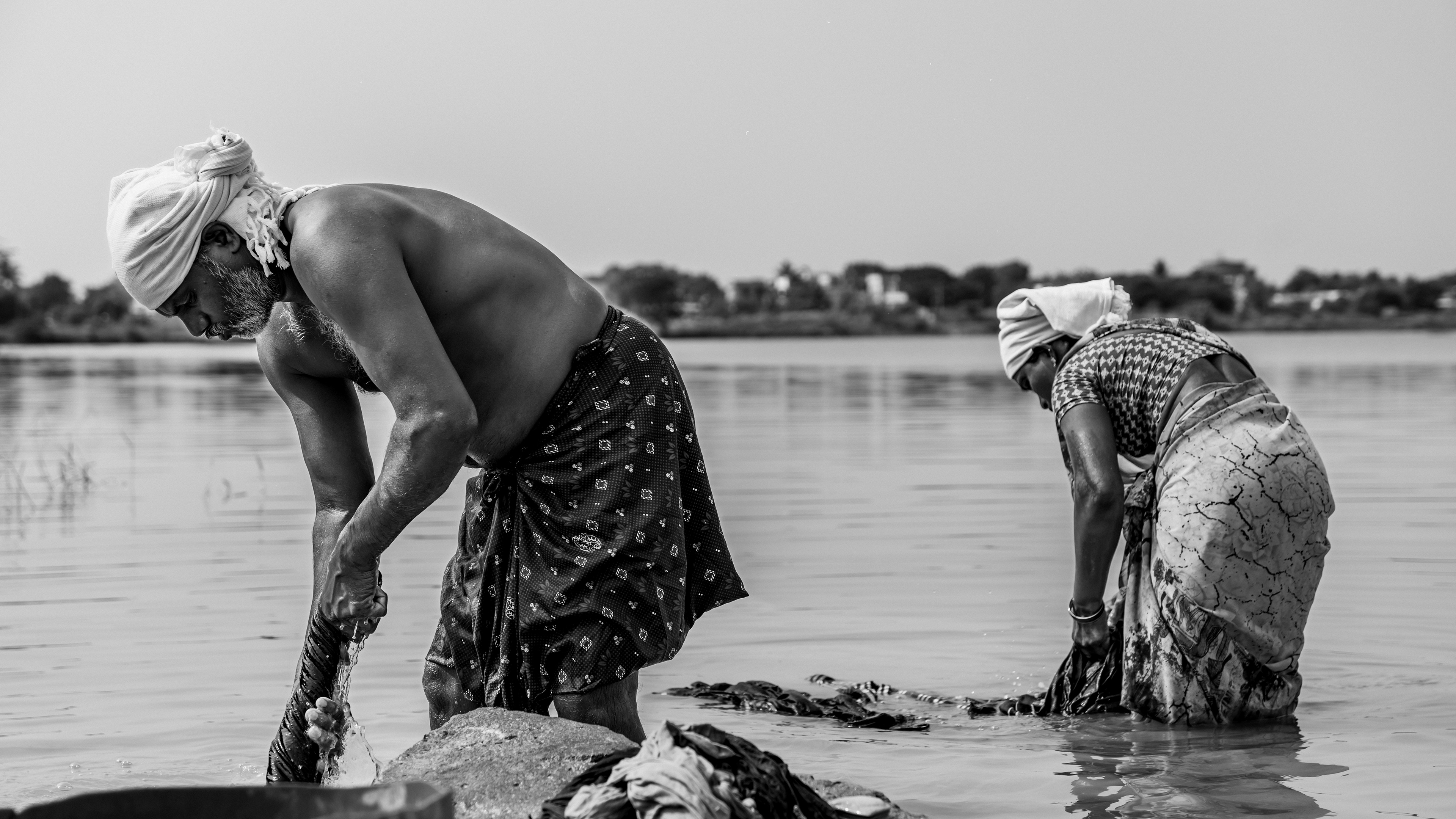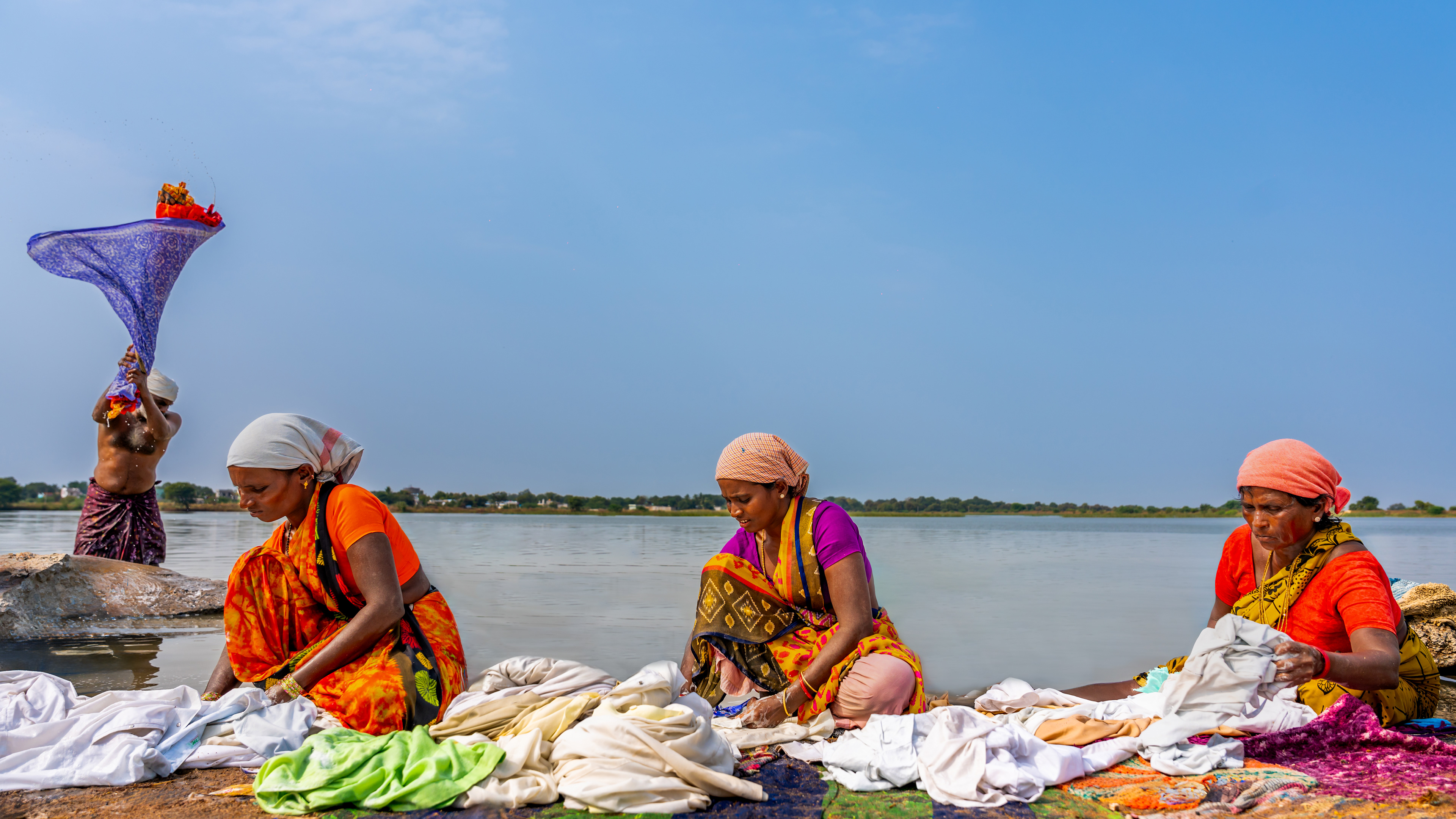 They skillfully wash clothes by the riverbank, embodying a tradition passed down through generations.