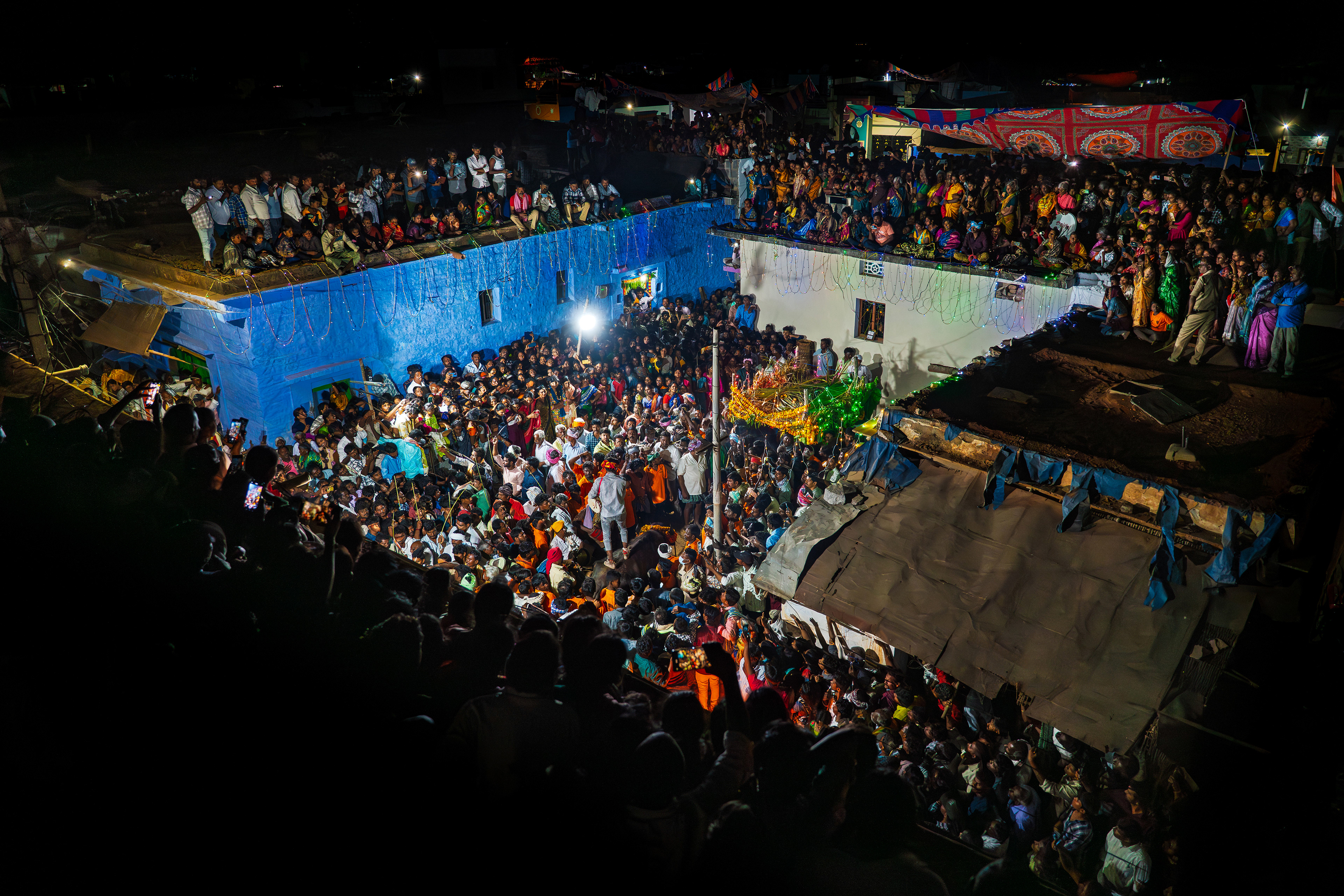Devara, is a unique cultural festival in which, for one night every thirty years, a village seals its perimeters to perform a series of sacrificial rituals for four goddesses. As a naked man surrounds the perimeters and the offerings are made, the villagers believe that their survival depends on keeping outsiders away and sealing their fate in the ritual that promises protection for the next three decades.